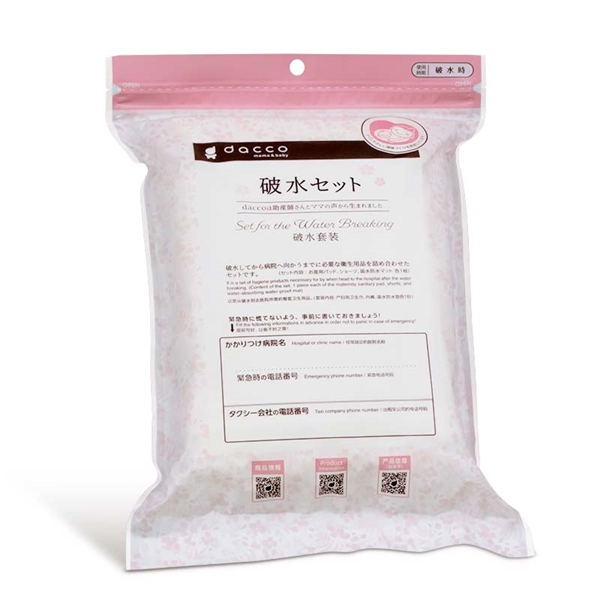 ・破水してから病院へ向かうまでに必要な衛生用品がセットになっているため、突然の破水にも慌てずに対応できます。