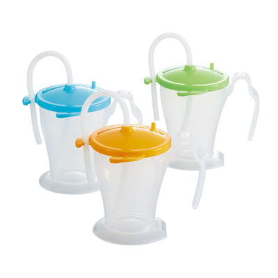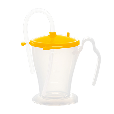 ベッド柵にも手にもフィットする、こぼしにくいストローカップです。