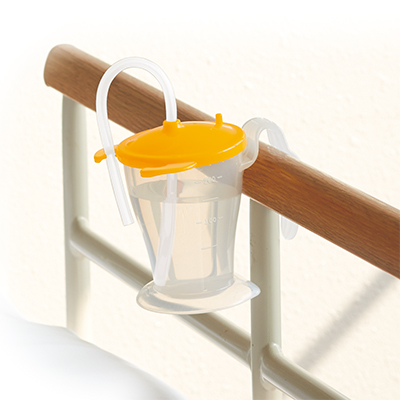 ベッド柵にも掛けられるストローカップ