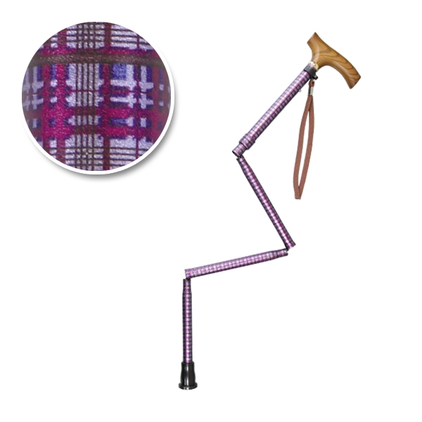 すべりにくい杖 伸縮折りたたみ式 紫チェック