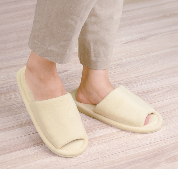 歩行に適したやわらかなパイル素材の室内履き