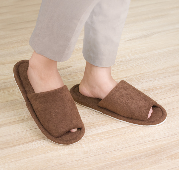 歩行に適したやわらかなパイル素材の室内履き