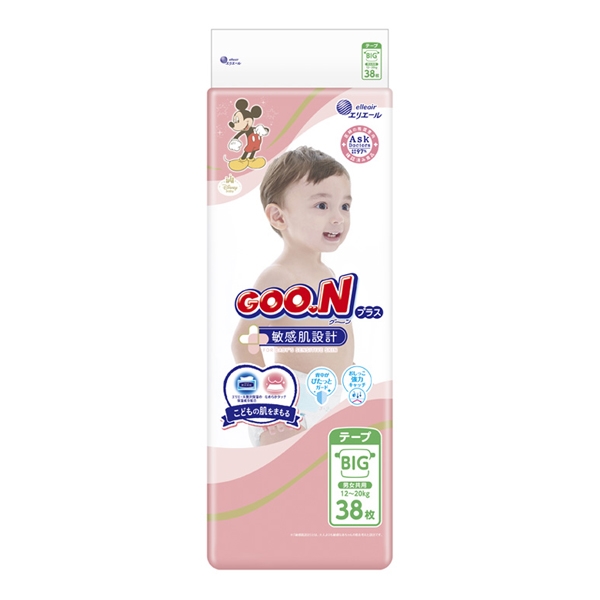 グーンプラス 敏感肌設計 BIGサイズ 38枚(ケース単位:4個)