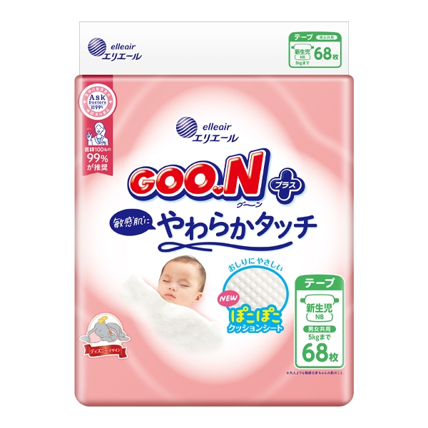 グーンプラス 敏感肌にやわらかタッチ 新生児用 68枚入